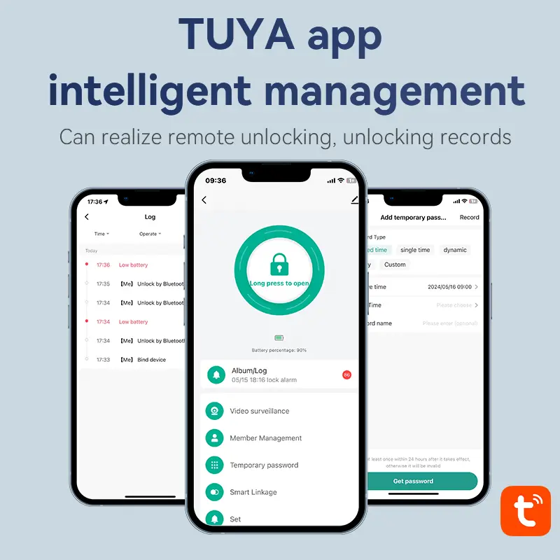 - Konvenčné metódy: Uchová heslá, fyzické kľúče, karty IC a dočasné kódy pre rôzne potreby používateľov a dvojité zabezpečenie.